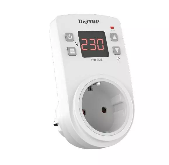 Пристрій постійно аналізує напругу в мережі та у разі виходу напруги за встановлені межі відбувається відключення підключених приладів.