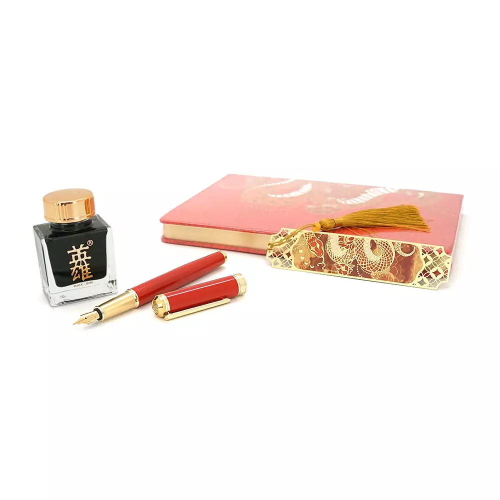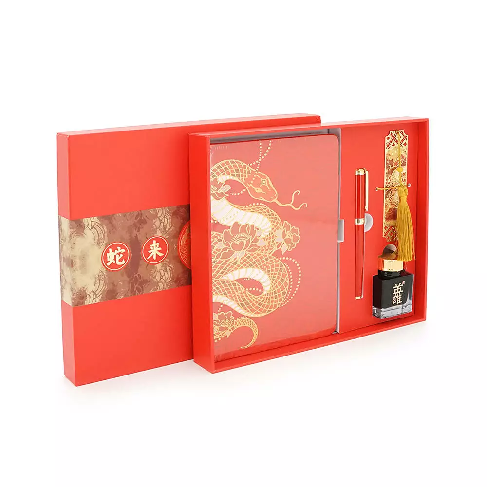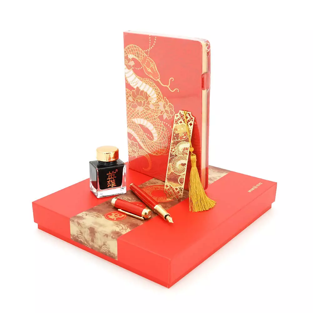 Подарунковий набір HERO Snake ручка перова чорнильна (іридієве перо), блокнот, закладка, чорнильниця, подарункова коробка, червоний, 265*230*41мм