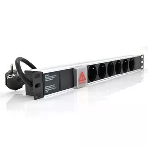 Подовжувач на 6 розеток з вимикачем, 220В ,німецький тип, 1U 19", алюмінієвий корпус, чорний довжина кабеля 1,8м, Q25