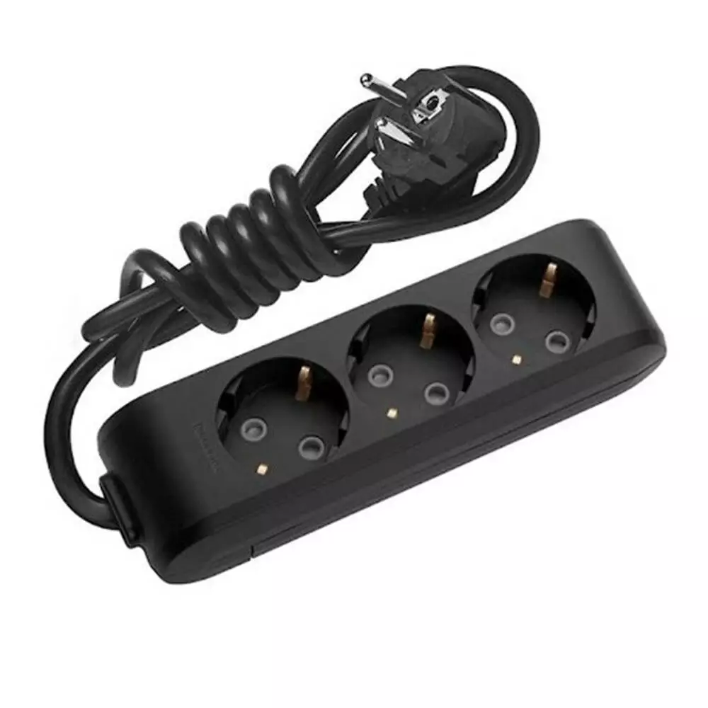Подовжувач Panasonic X-tendia із заземленням 3 гнізда, 2 м, з захистними шторками, чорний