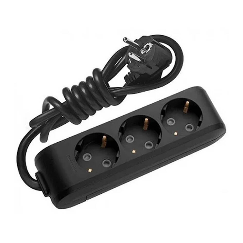 Подовжувач Panasonic X-tendia із заземленням 3 гнізда, 5 м, з захистними шторками, чорний