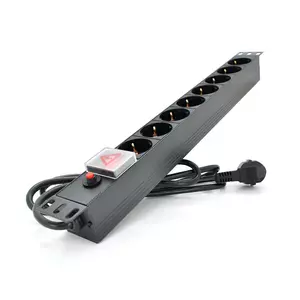 Подовжувач PiPo на 8 розеток з вимикачем + відсікач, 220В, німецький тип, 1U 19", алюмінієвий корпус, чорний довжина кабелю 1,8 м, Q25
