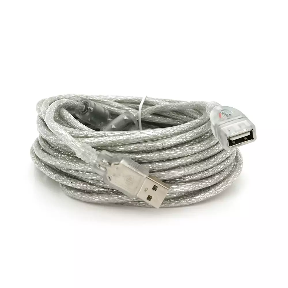 Подовжувач USB 2.0 AM/AF, 10.0m, 2 ферити, прозорий білий Q70