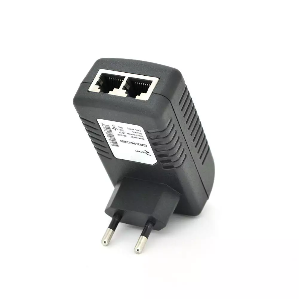 POE інжектор RITAR адаптер 48V 0,5A (24Вт) 2 порти (RG-45 10/100Мбіт/с + RG-45 POE) Євро вилка