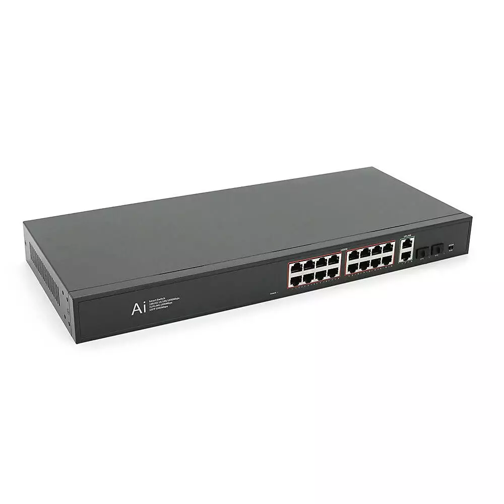 POE комутатор гігабітний Merlion 16 POE + 2 RJ45 + 2 SFP 10/100/1000 вбудований блок живлення 52V 4.8A