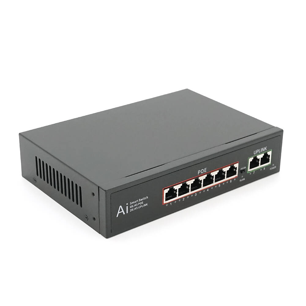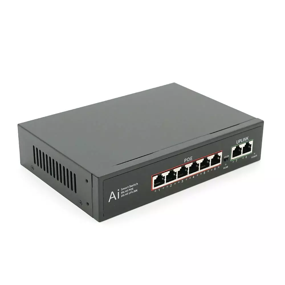 POE комутатор гігабітний Merlion 6 POE 10/100/1000 + 2 RJ45 10/100/1000 вбудований блок живлення 52V 2.3A