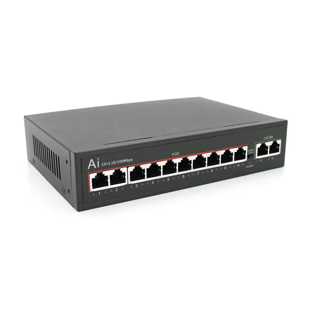 Роз'єм 10 портів POE 10/100 Мбіт/с; 2 порти UP-Link / 100 Мбіт / с