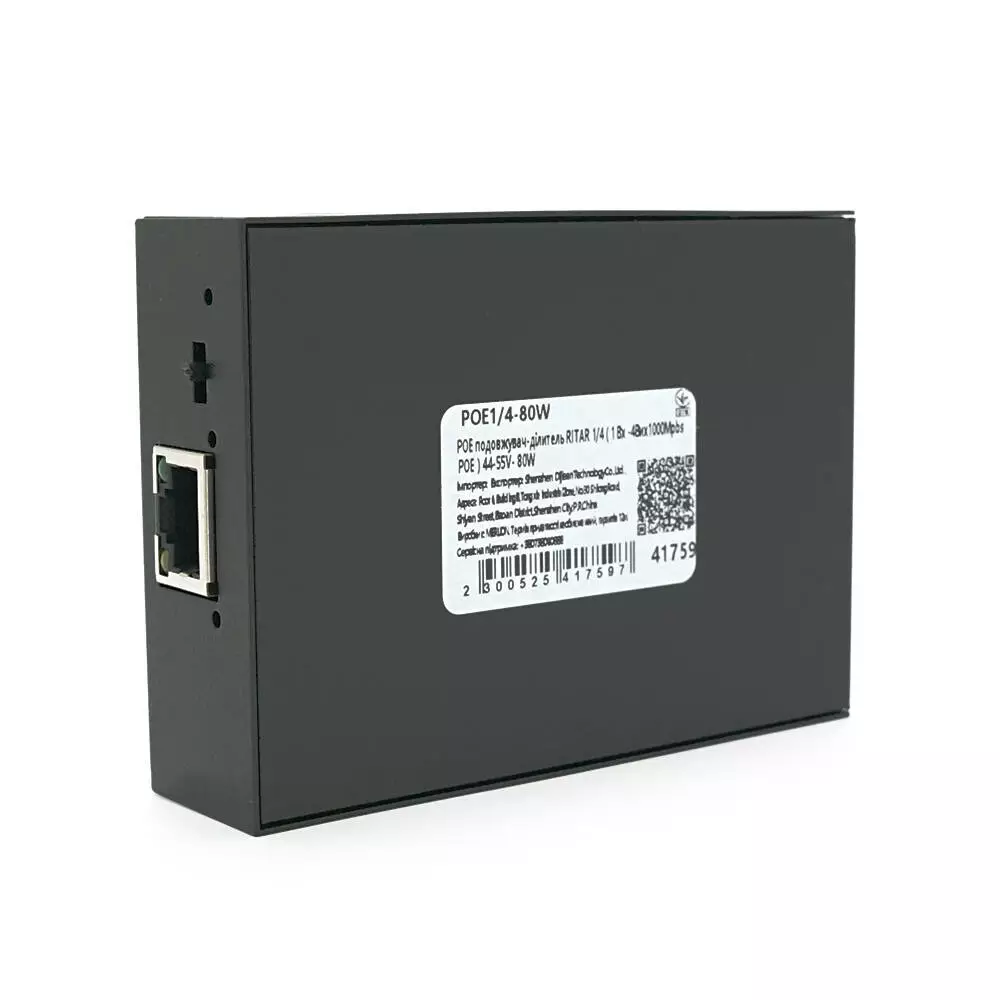 POE подовжувач-ділитель RITAR 1/4 ( 1 Вх -4 Вих 1000Mpbs POE ) 44-55V- 80W