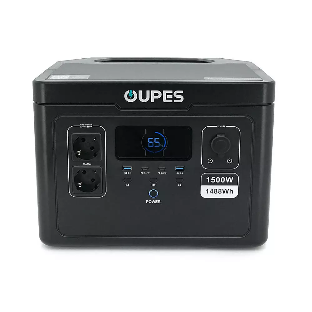 Портативний джерело живлення OUPES S015, LiFePO4, потужність 1500Вт, пікова 3600Вт, 1488Wh, 2*USB-A:18W, 2*USB-C:140W, DC12V/10A,359*271*278 мм,13.9 кг