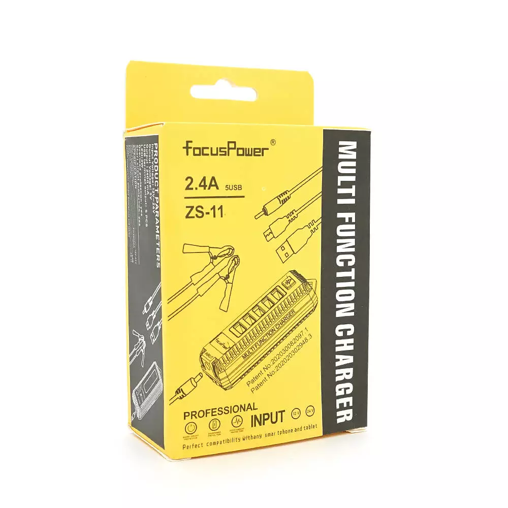Портативний HUB із крокодилами на 5*USB2.0 (2.4A), живлення 12В, Black, Box