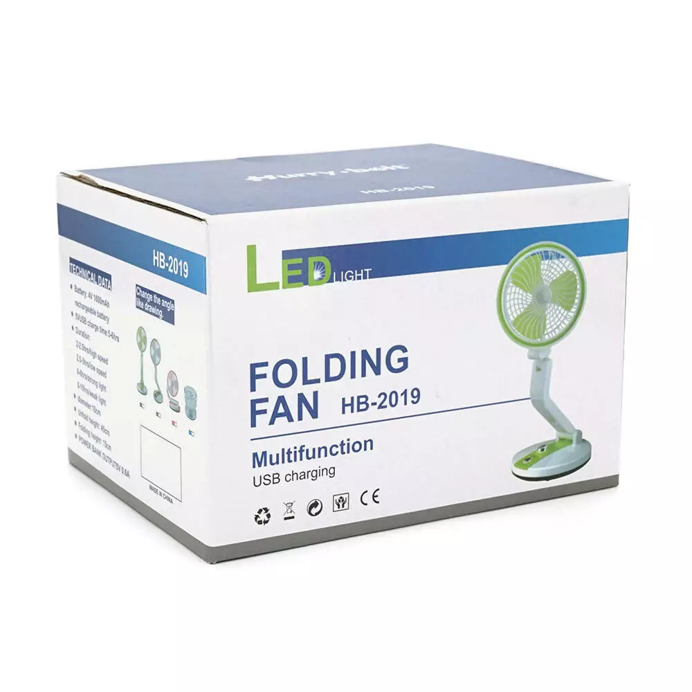 Портативний настільний вентилятор HB-2019, R*180мм, диммер, вбудований акумулятор 4V 1600mAh, USB кабель, Box