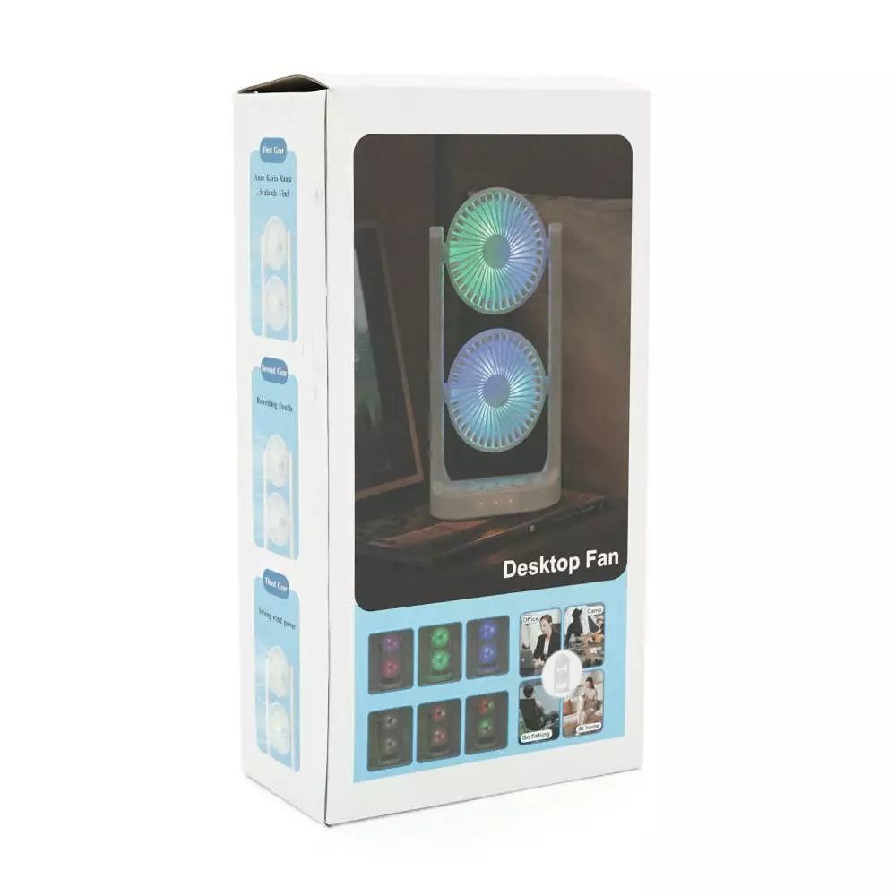 Портативний настільний вентилятор YT280, 2*R*105мм, кут повороту 360°, 3+3 режими, живлення від USB кабелю, White, Box