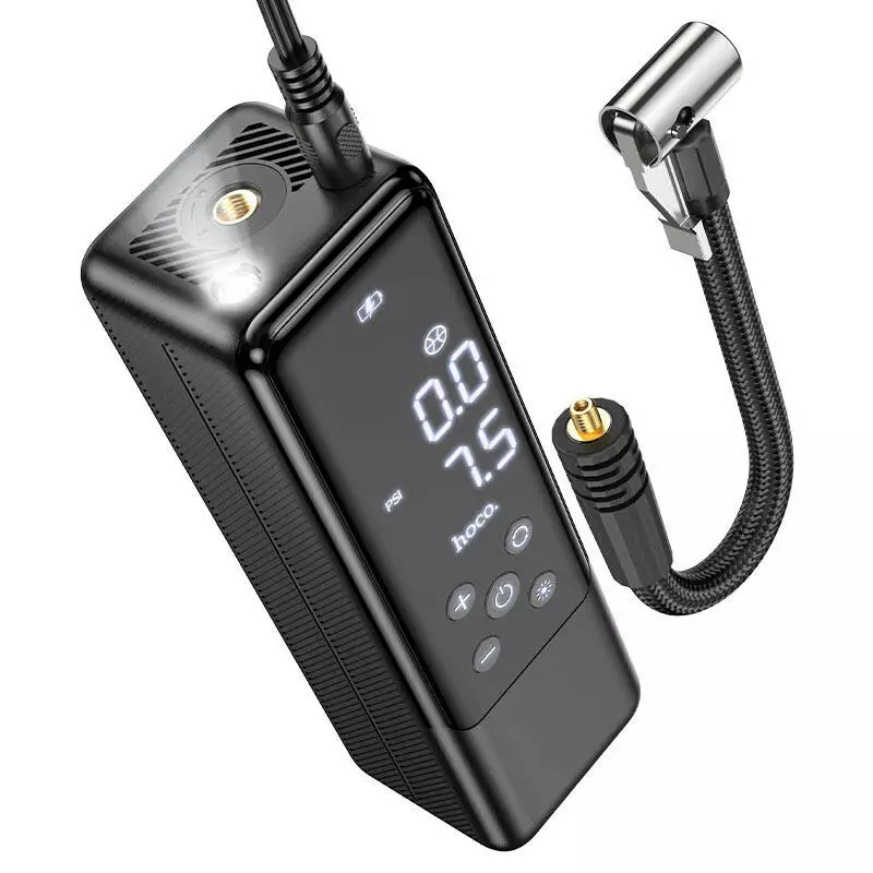 Портативний повітряний насос HOCO ZP5, до 3.5 атм, ліхтарик, Black, Box