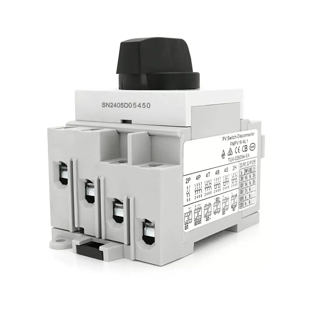 Поворотний вимикач зовнішнього монтажу HGN4-NL1-16 є високоякісним пристроєм, призначеним для використання в сонячних енергетичних системах. Цей вимикач забезпечує надійне відключення та захист від перевантажень при роботі з постійною напругою до 1000 В та струмом до 16 А. Його чотириполюсна конструкція та сірий колір роблять його зручним та універсальним для різних установок.