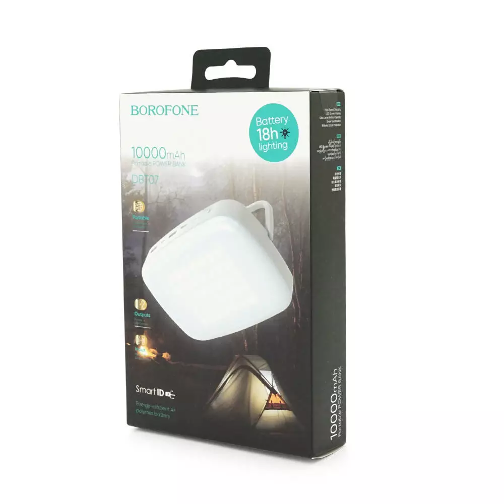 Power Bank Borofone DBT07 10000mAh+LED ліхтар, 2USB+Type-C, 18W, White, 0.31kg