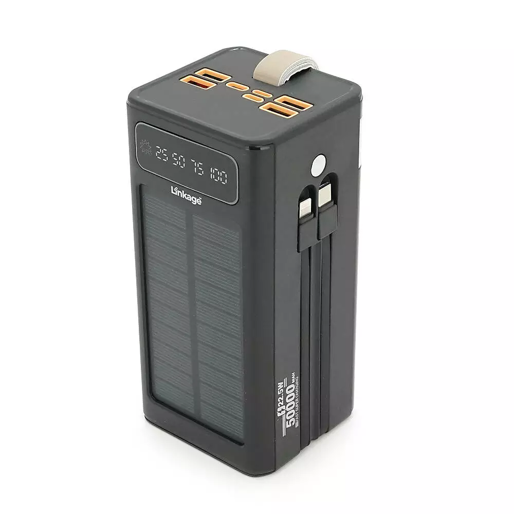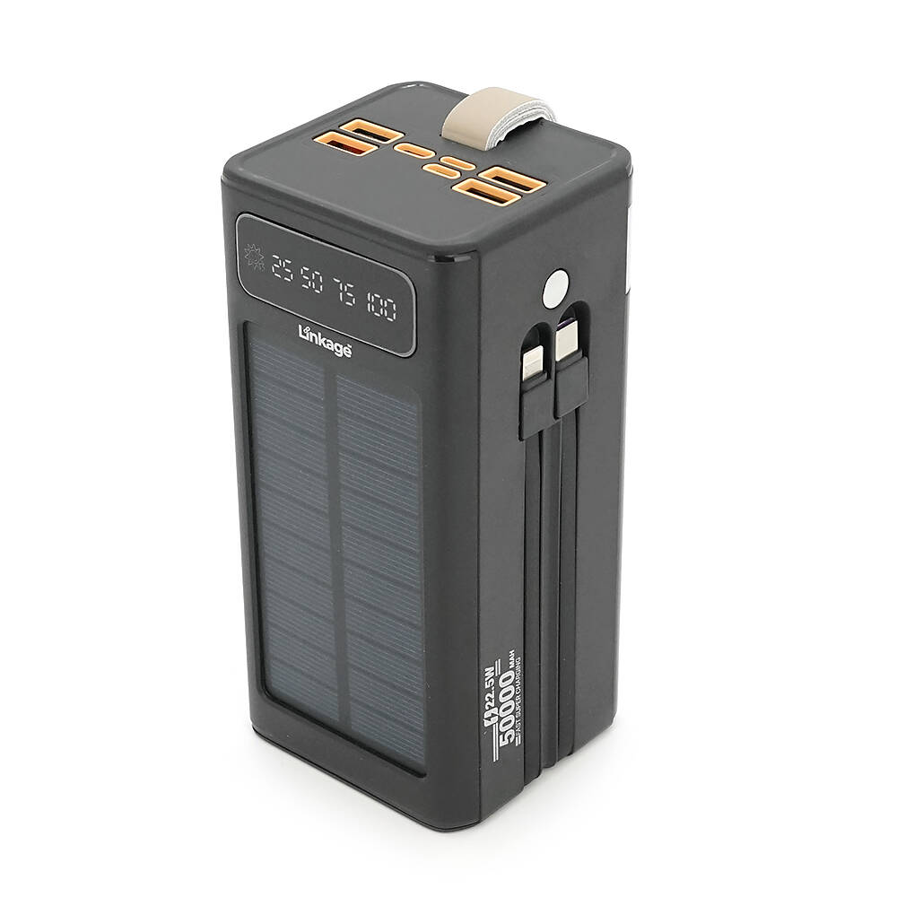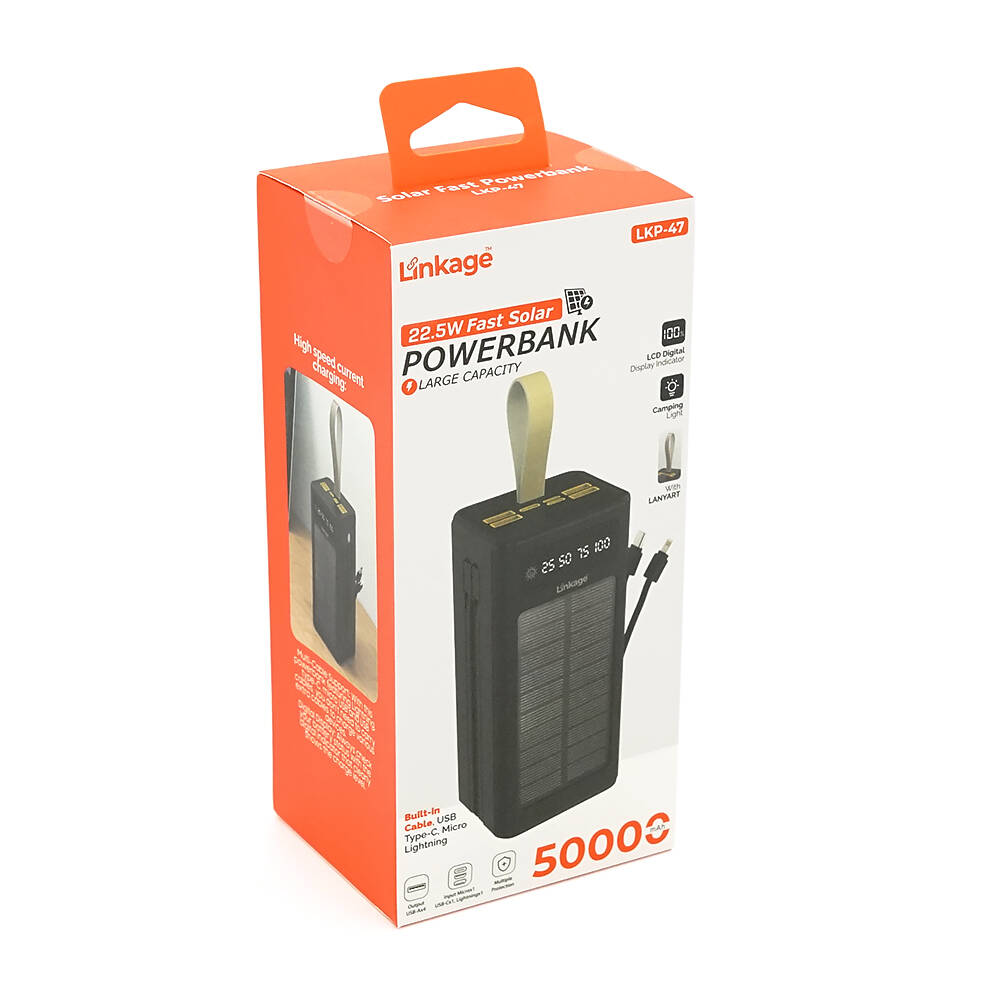 Power bank Linkage LKP-47 50000mAh, Solar, 22.5W, Кабелю Туре-С+Lighting, 1,060 kg, Black, Blister
