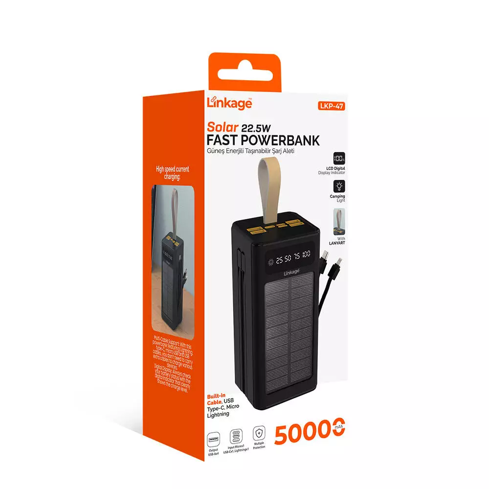 Power bank Linkage LKP-47 50000mAh, Solar, 22.5W, Кабелю Туре-С+Lighting, 1,080 kg, Black, Blister