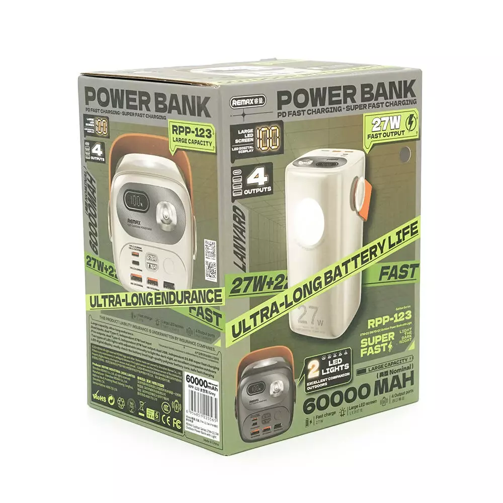 Power Bank Remax RPP-123 60000mAh, PD 27W+QC 22.5W, Gray, 1.454kg