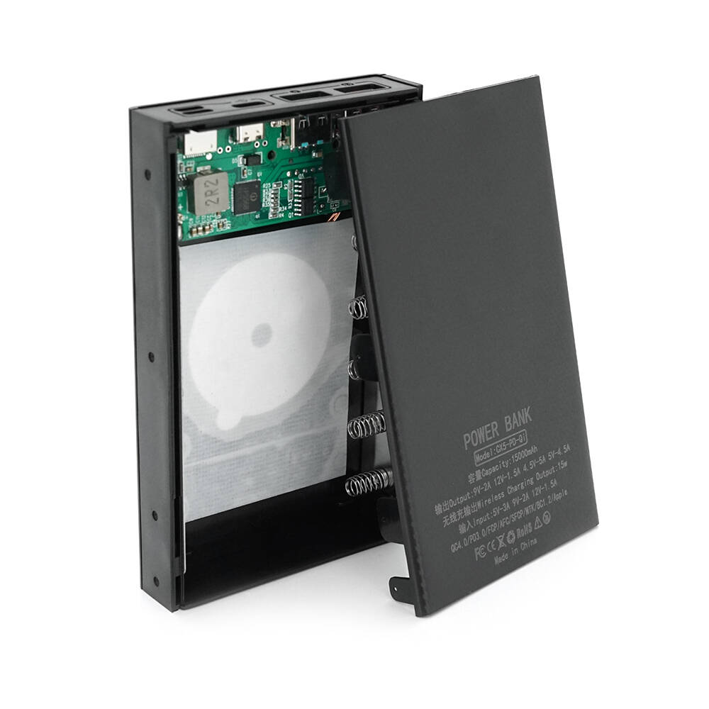 Power bank Voltronic CX5-PD-QI під 5х18650, Wireless charger, Digital display, Output: 22.5W, Micro-USB, Type-C, Lightning, ABS, PVC, Black, BOX