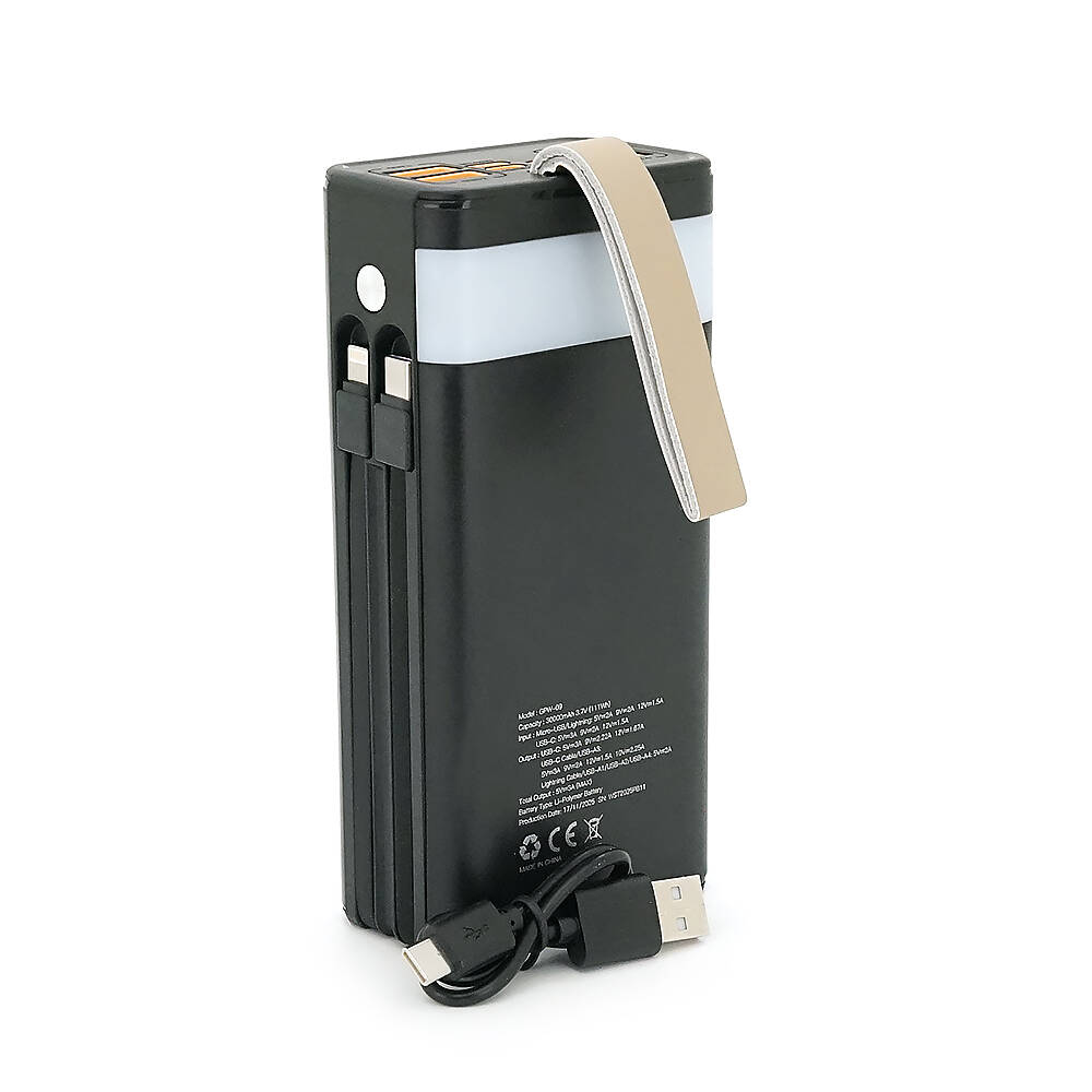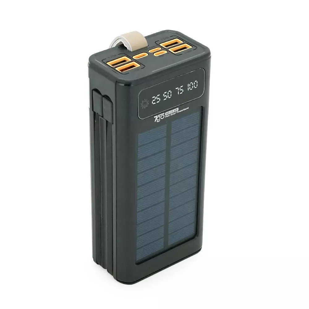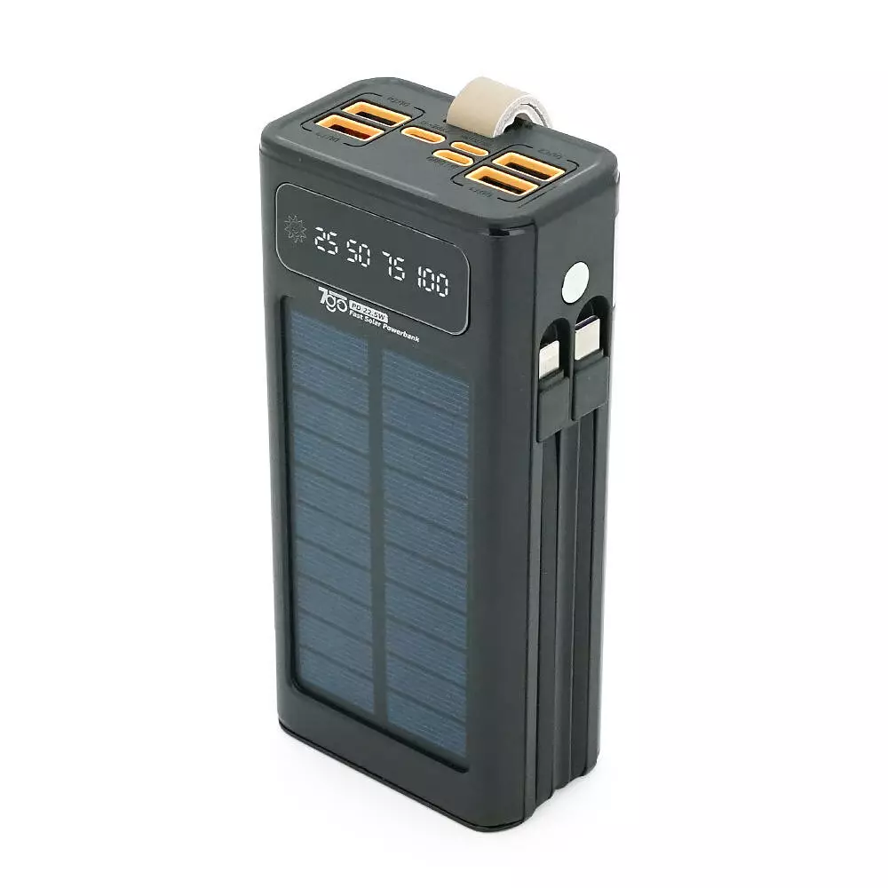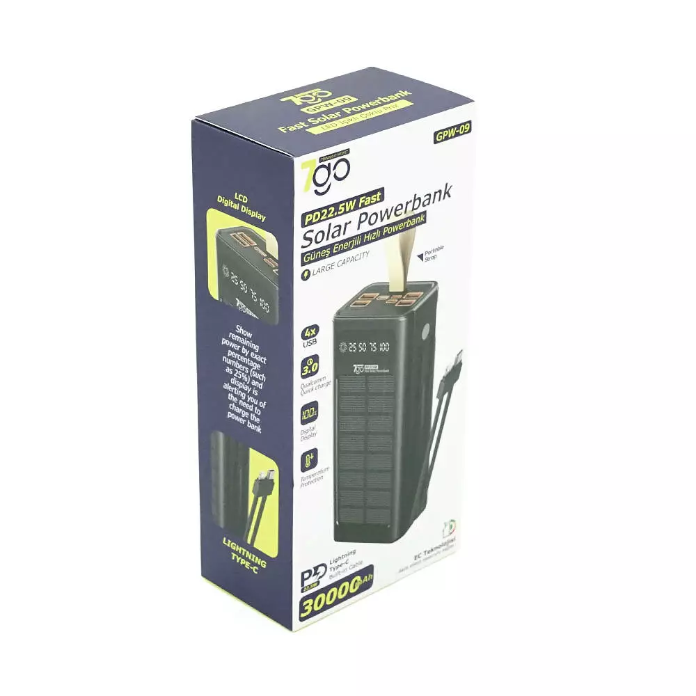 Powerbank 7GO GPW-09 30000mAh, Solar, 22.5W, Li-pol, LCD Display, Вхід:Type-C, Виходи: 2xUSB Type-C, 4xUSB Type-A, кабелю T-C/Ligh, 0,70, Black, Box