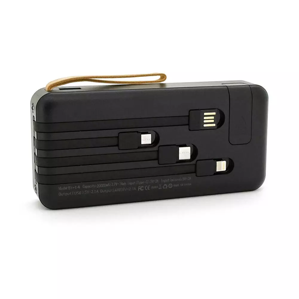 20000mAh з можливістю підключення через MicroUSB та Type-C. Має два