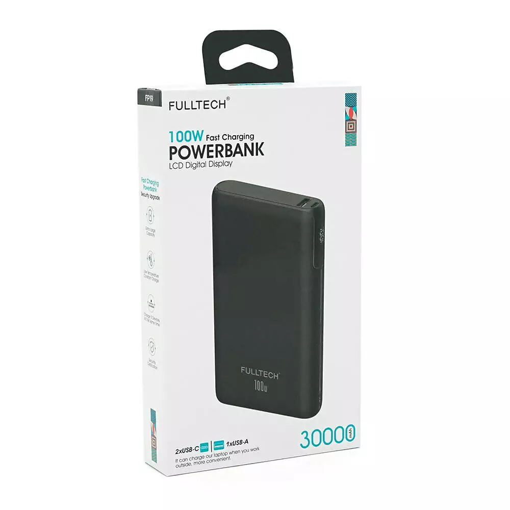 Powerbank Fulltech FP19 30000mAh, Fast charge PD100W, Li-pol, LCD Display, Вхід:Type-C, Виходи: 2xUSB Type-C, 1xUSB Type-A, Box