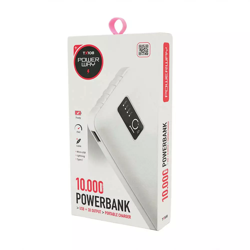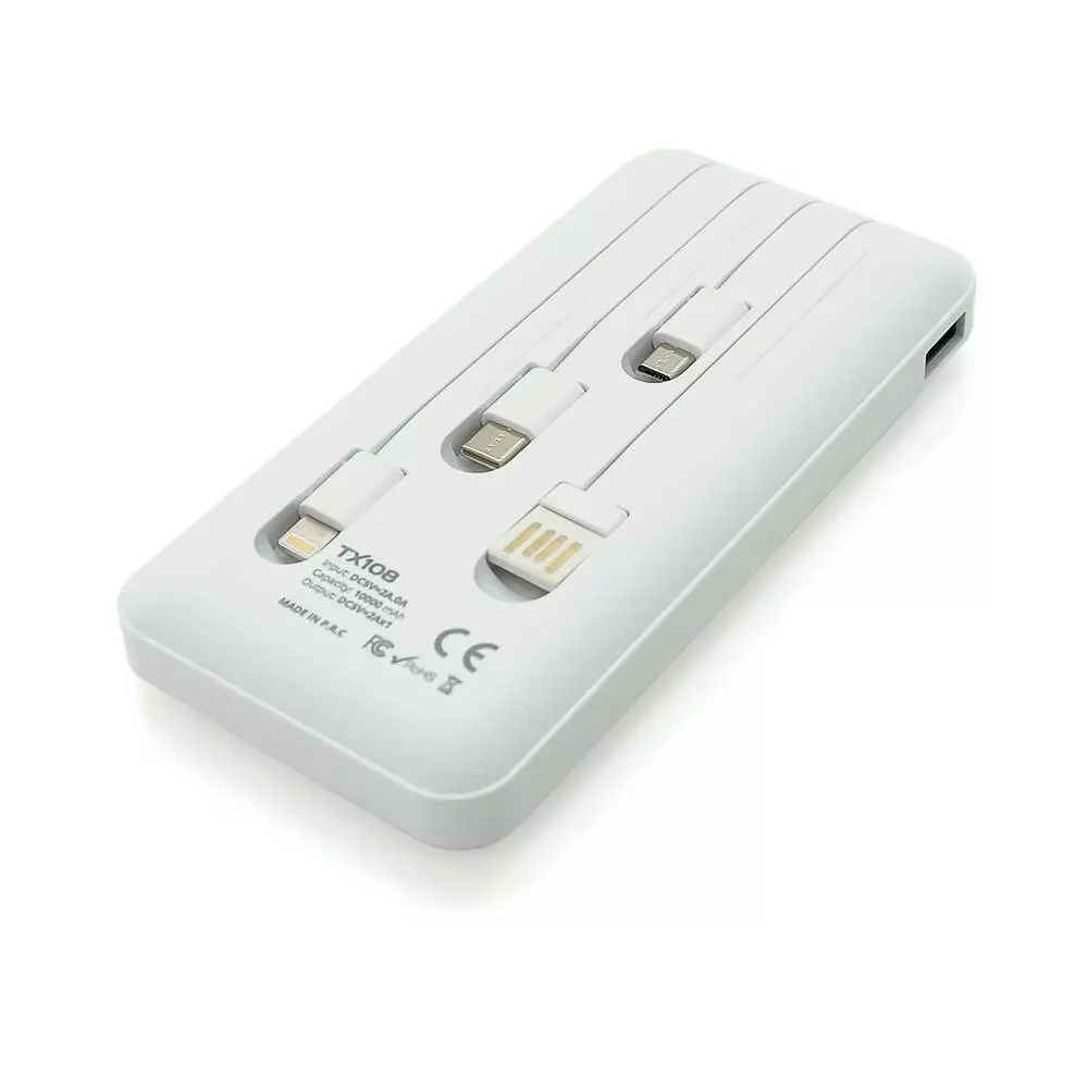 Powerbank TX-108 10000mAh, кабеля USB: Micro, Lighting, Black, (270g), Blister