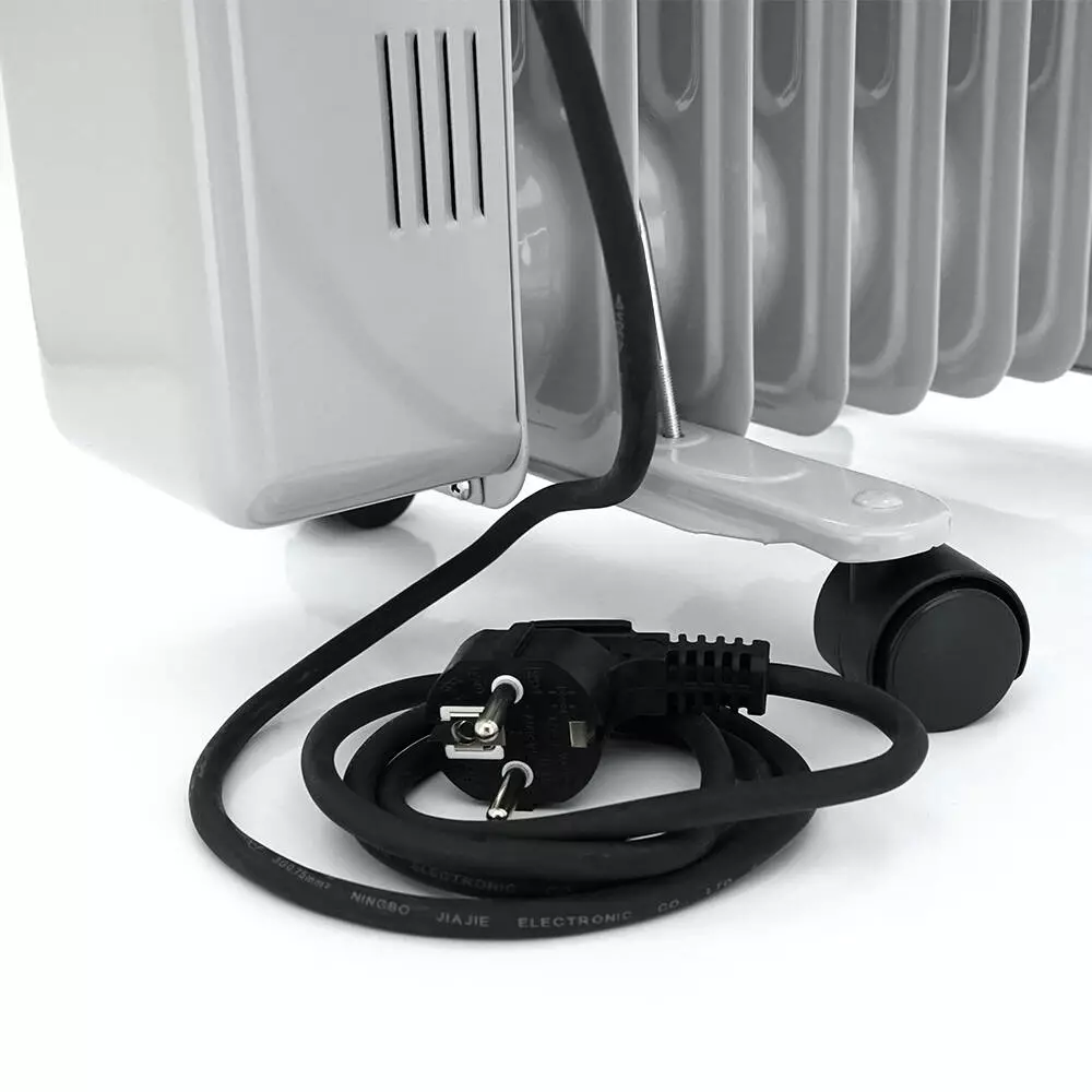 Для зручності переміщення радіатор оснащений колесами та ручкою, а спеціальний відсік для шнура дозволяє акуратно зберігати кабель під час перестановки або зберігання. Захист від перегріву забезпечує безпечну експлуатацію навіть за тривалого використання.