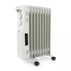 Дев'ять секцій забезпечують оптимальну тепловіддачу, а вбудований термостат дозволяє точно регулювати температуру. Управління просте та інтуїтивно зрозуміле: поворотний перемикач обирає режим роботи, а термостат налаштовує рівень нагрівання. Світловий індикатор повідомляє про роботу приладу.