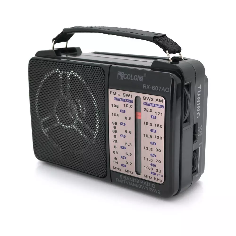 Радіоприймач GOLON RX-607 – це компактний пристрій з підтримкою LED підсвічування, що забезпечує якісне відтворення звуку та радіопередач. Він має два вбудовані динаміки по 3 Вт кожен, що забезпечують відмінне звучання. Корпус виготовлений із міцної пластмаси та має чорний колір, забезпечуючи стильний та сучасний зовнішній вигляд.