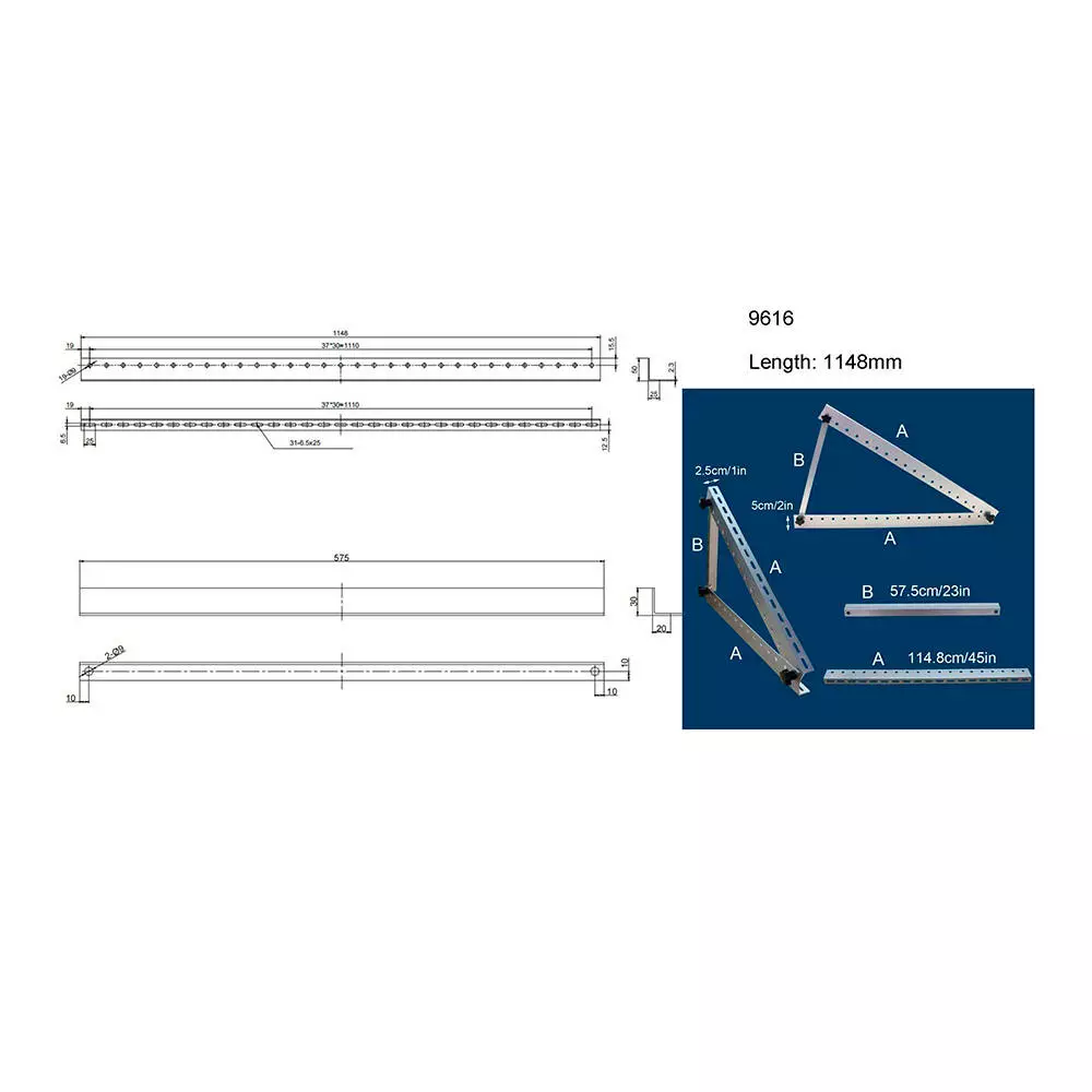 Завдяки високоякісному алюмінієвому матеріалу, наша система кріплення має міцність і довговічність, що забезпечить безпеку вашої сонячної панелі на довгі роки. Регульована конструкція дає змогу легко змінювати кут нахилу панелі для оптимального поглинання сонячного світла в будь-який час доби.