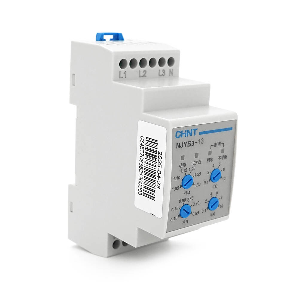 Реле контролю фаз CHINT NJYB3-13 AC220V, 3F4P, Захист U+(1,05~1,3)*Us/U-(0,7~0,95)*Us,Затримка 0,1~10с,Захист обриву/послідовності фаз/баланс20%, Ue240/415V, Ie0.75/0.47, 1CO+1NO