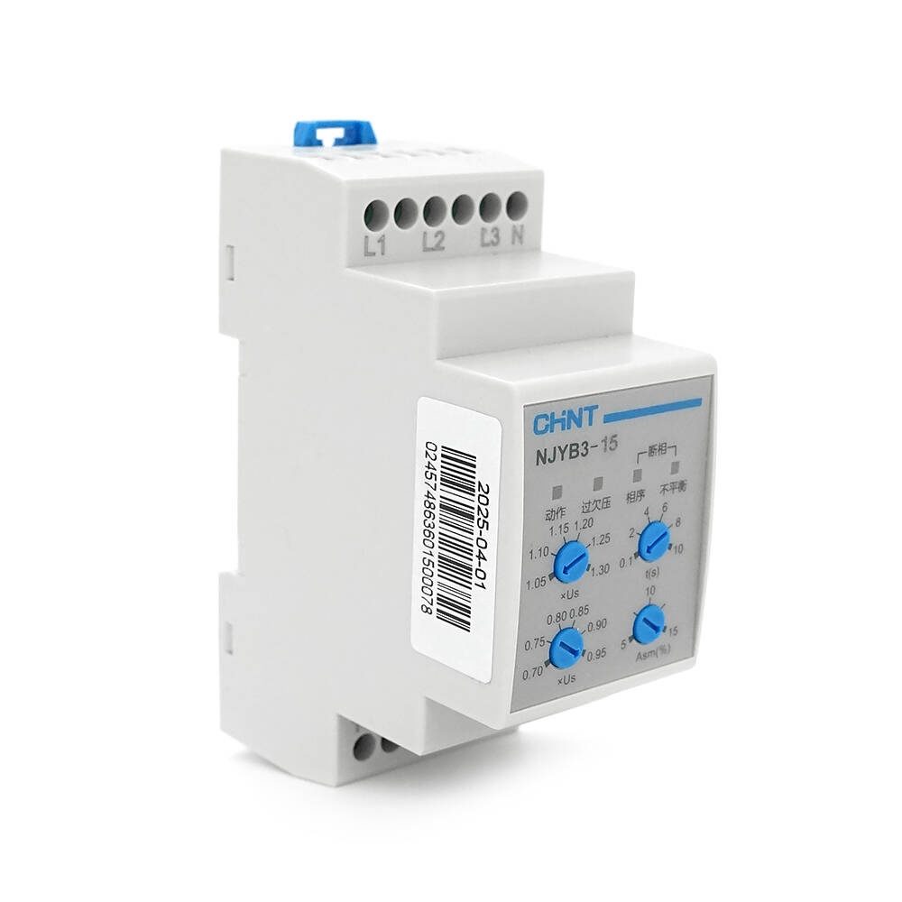 Реле контролю фаз CHINT NJYB3-15 AC220V, 3F4P, Захист U+(1,05~1,3)*Us/U-(0,7~0,95)*Us,Затримка 0,1~10с,Захист обриву/послідовності фаз/баланс5-15%,Ue2 Ie0.75/0.47, 1CO+1NO