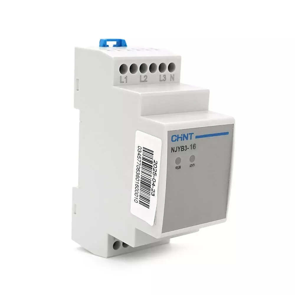 Реле контролю фаз CHINT NJYB3-16 AC220V, 3F4P, Захист обриву/послідовності фаз, Ue240/415V, Ie0.75/0.47, 1CO+1NO