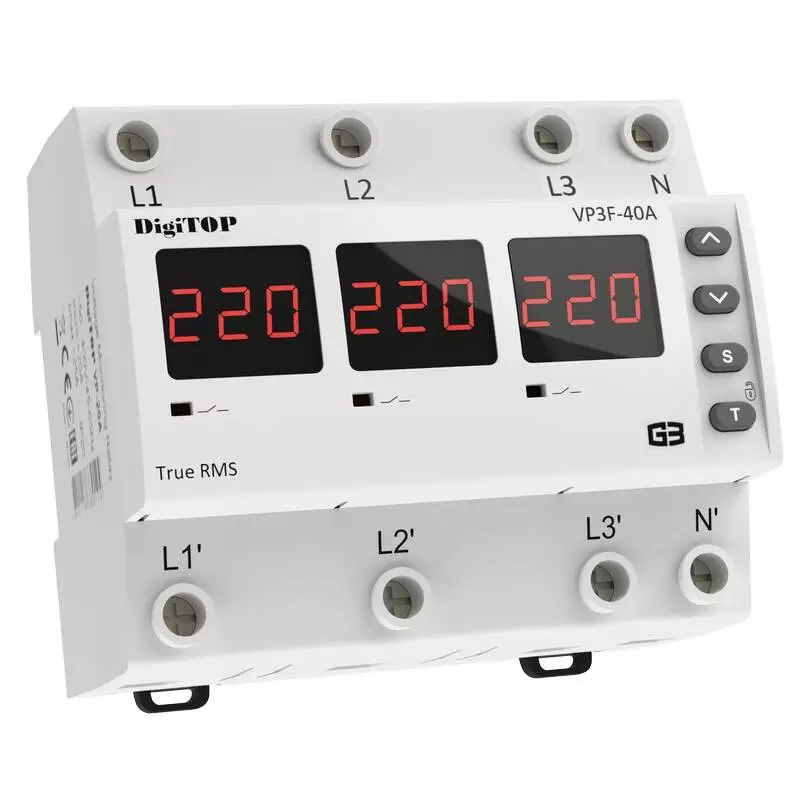 Трифазне реле напруги VP-3F40А M6R призначене для захисту трифазних