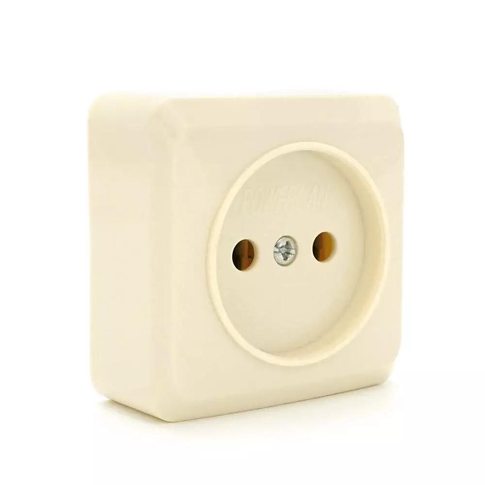Розетка без заземлення - призначена для накладного (зовнішнього) монтажу. Як правило, розетки без заземлення використовуються в старих будівлях з двожильний провідний (фаза і нуль). При новому будівництві, а також реконструкції і ремонті, повинні використовуватися розетки з заземлюючим контактом. Корпус виробу виконаний з міцного пластику, стійкого до зносу, дії ультрафіолету.