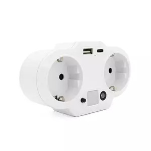 Розетка двійник із заземленням HHT609W, USB+Type-C, 3.4А, зашита від перевантаження, White