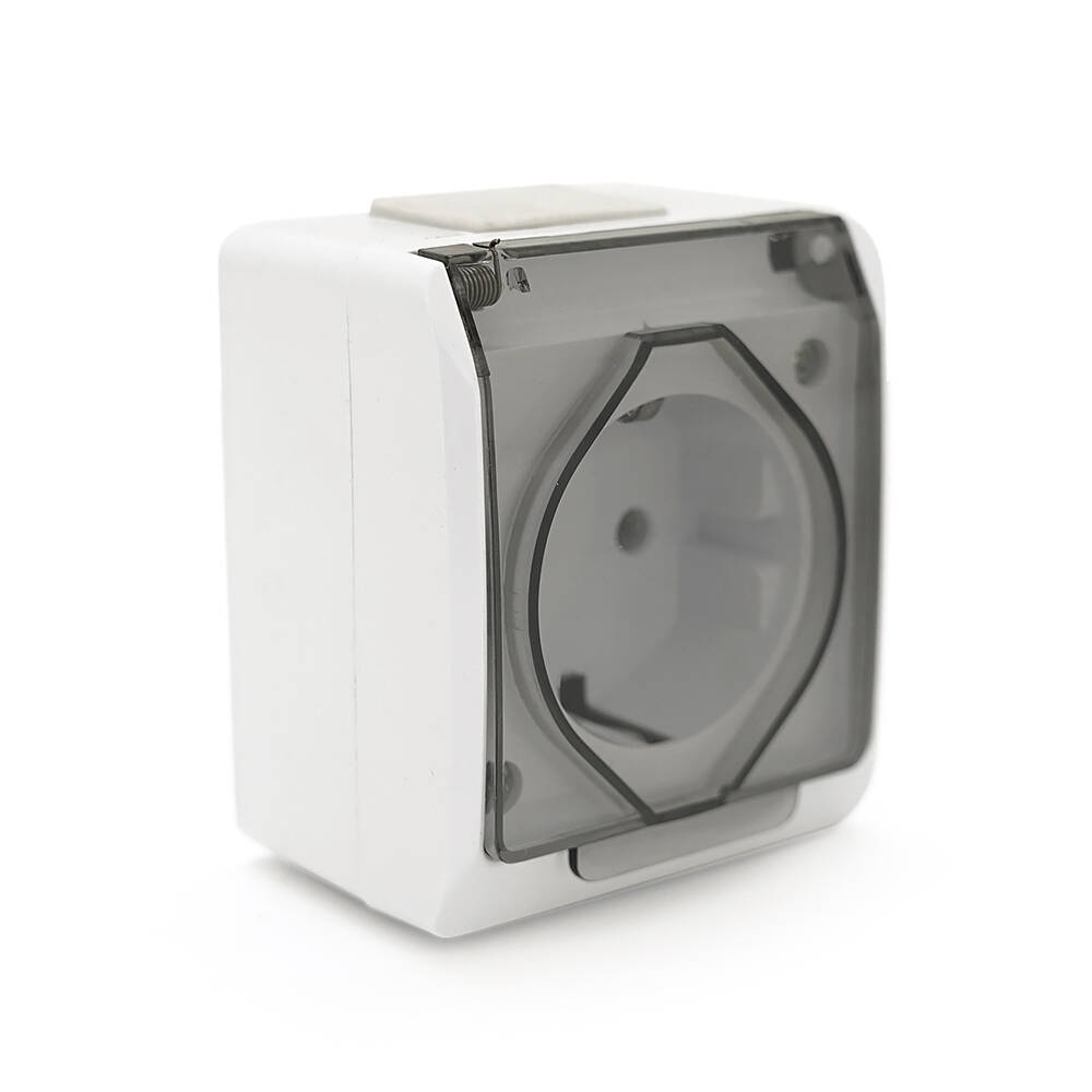 Розетка одинарна без заземлення зовнішнього монтажу з кришкою YT163, біла, IP44, Q10