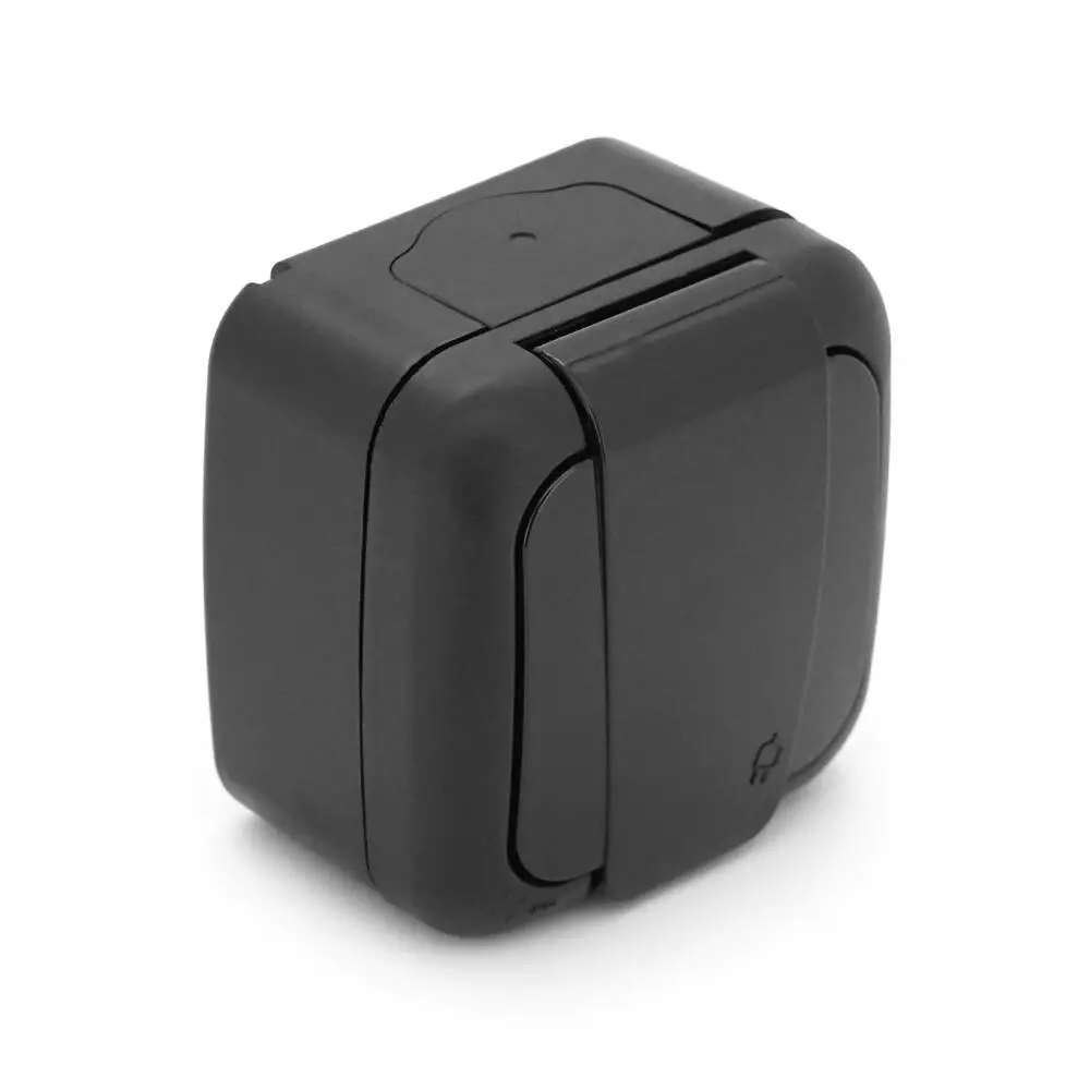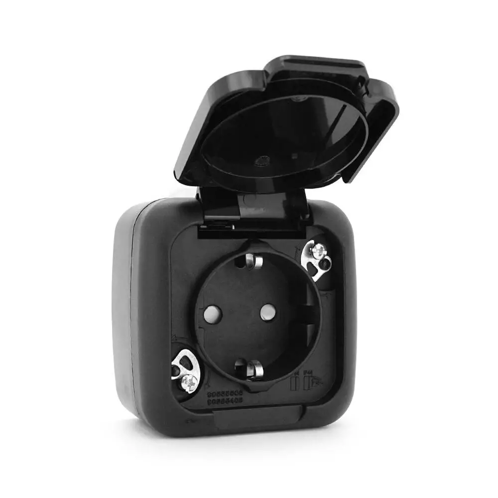 Розетка одинарна ViKO Palmiye із заземлення, із захисними шторками, зовнішнього монтажу з кришкою, P54, АС: 110-250, 16A Black