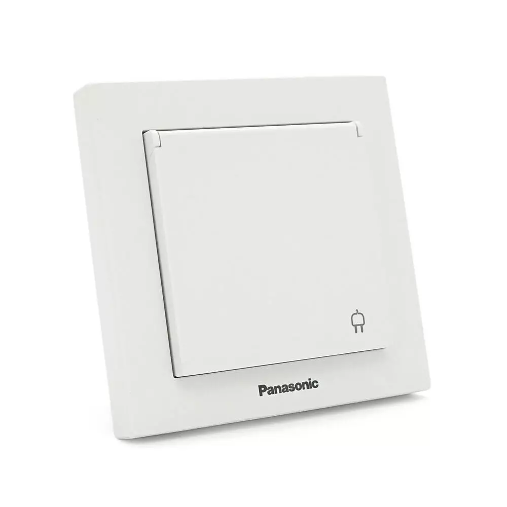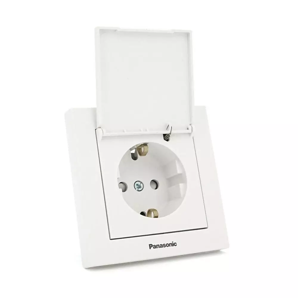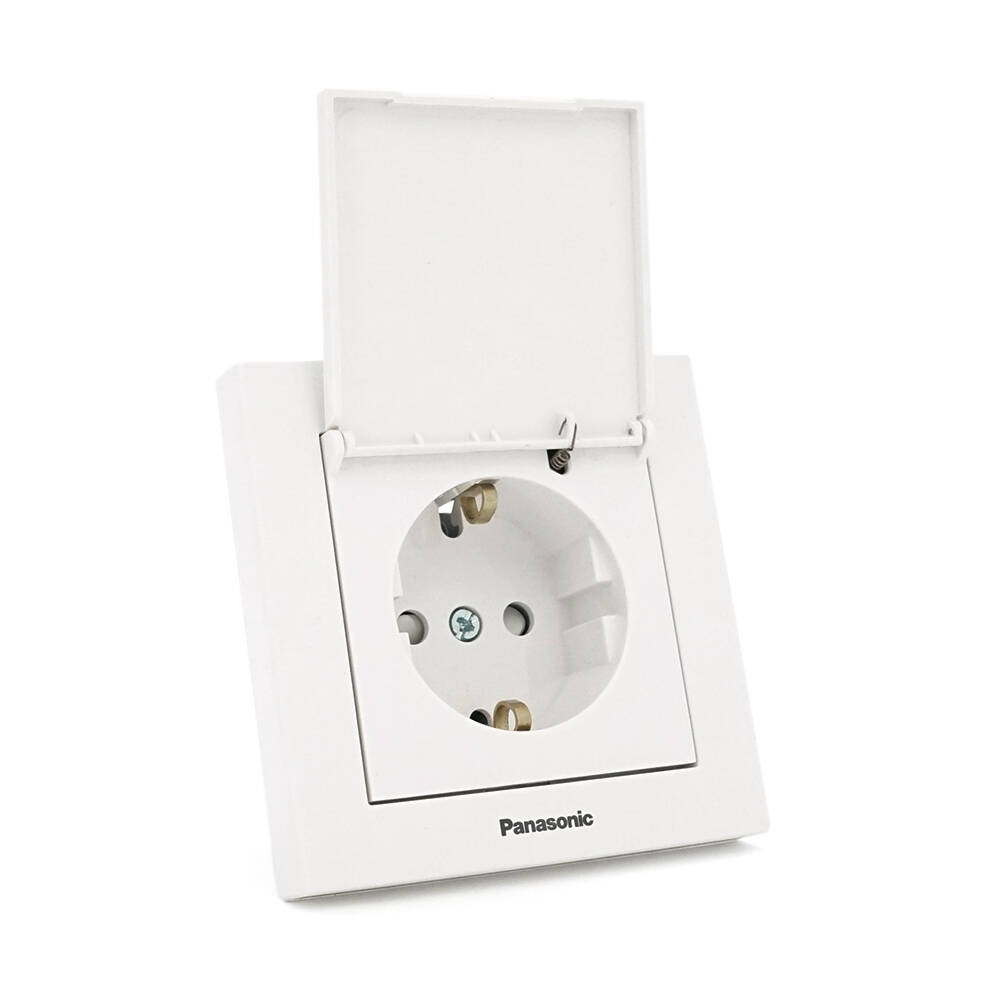 Розетка Panasonic Karre Plus 55 із заземленням, із захисними шторками, з кришкою, біла