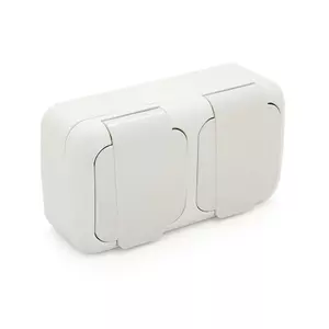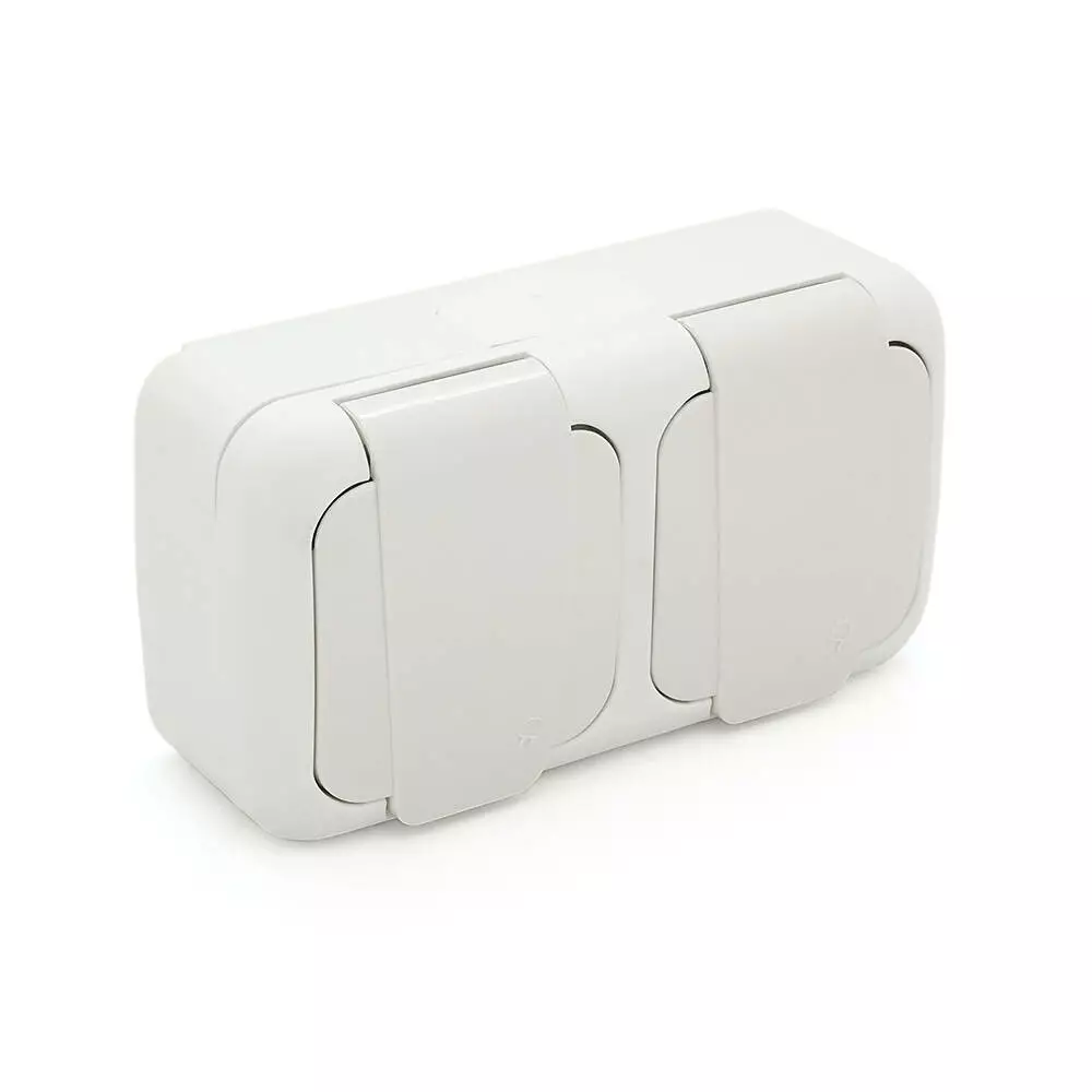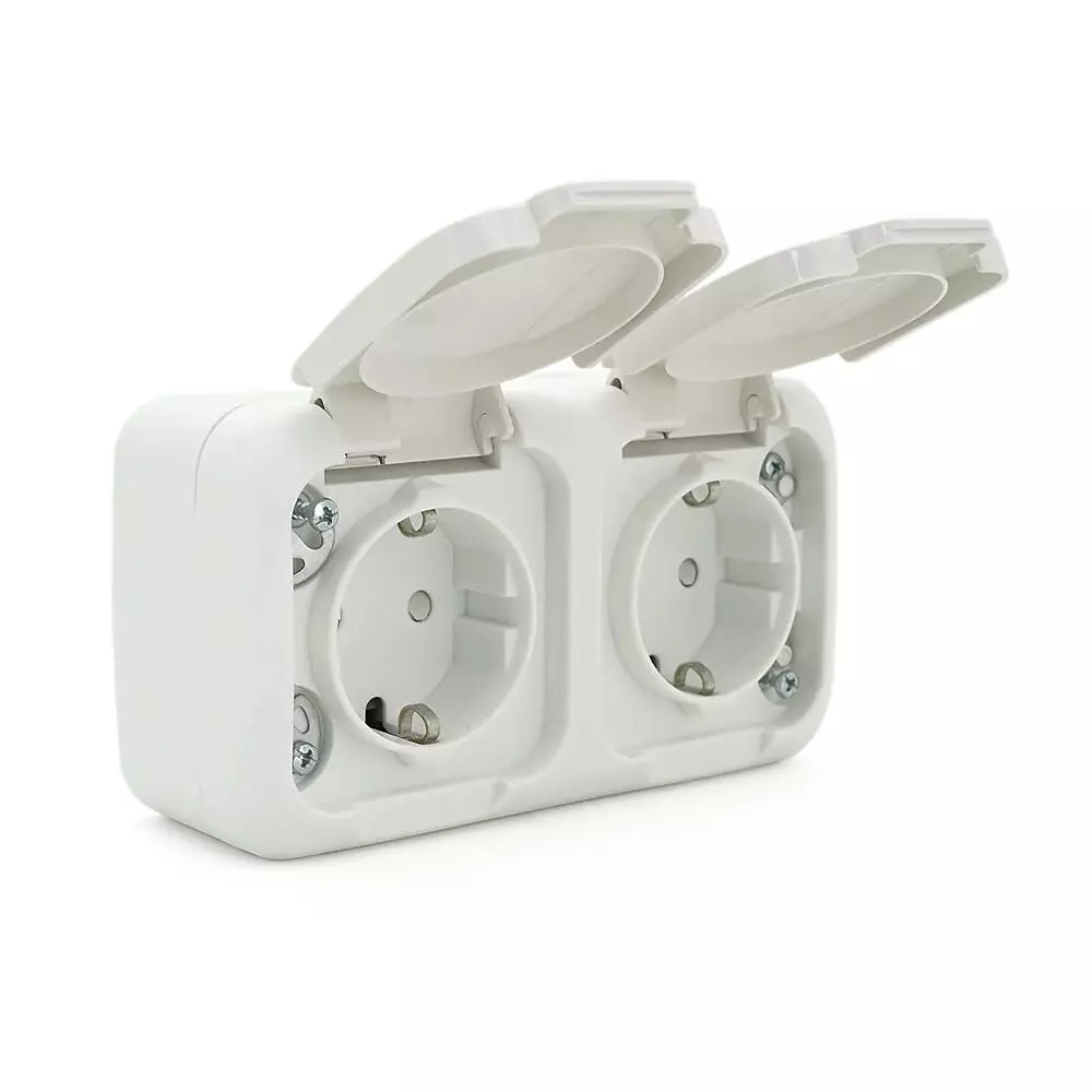 Розетка подвійна ViKO Palmiye із заземлення, із захисними шторками, зовнішнього монтажу з кришкою, P54, АС: 110-250, 16A White