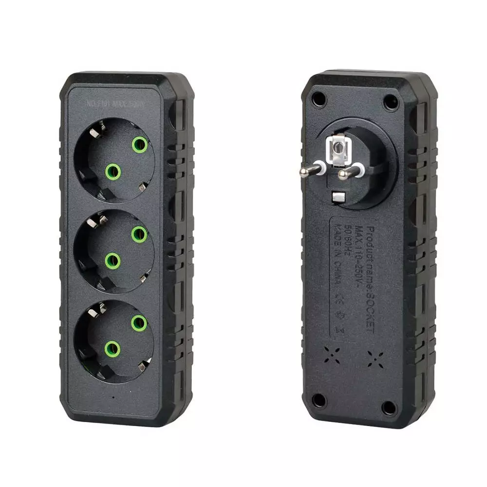 Розетка трійник F101-Black із заземленням – це зручне та практичне