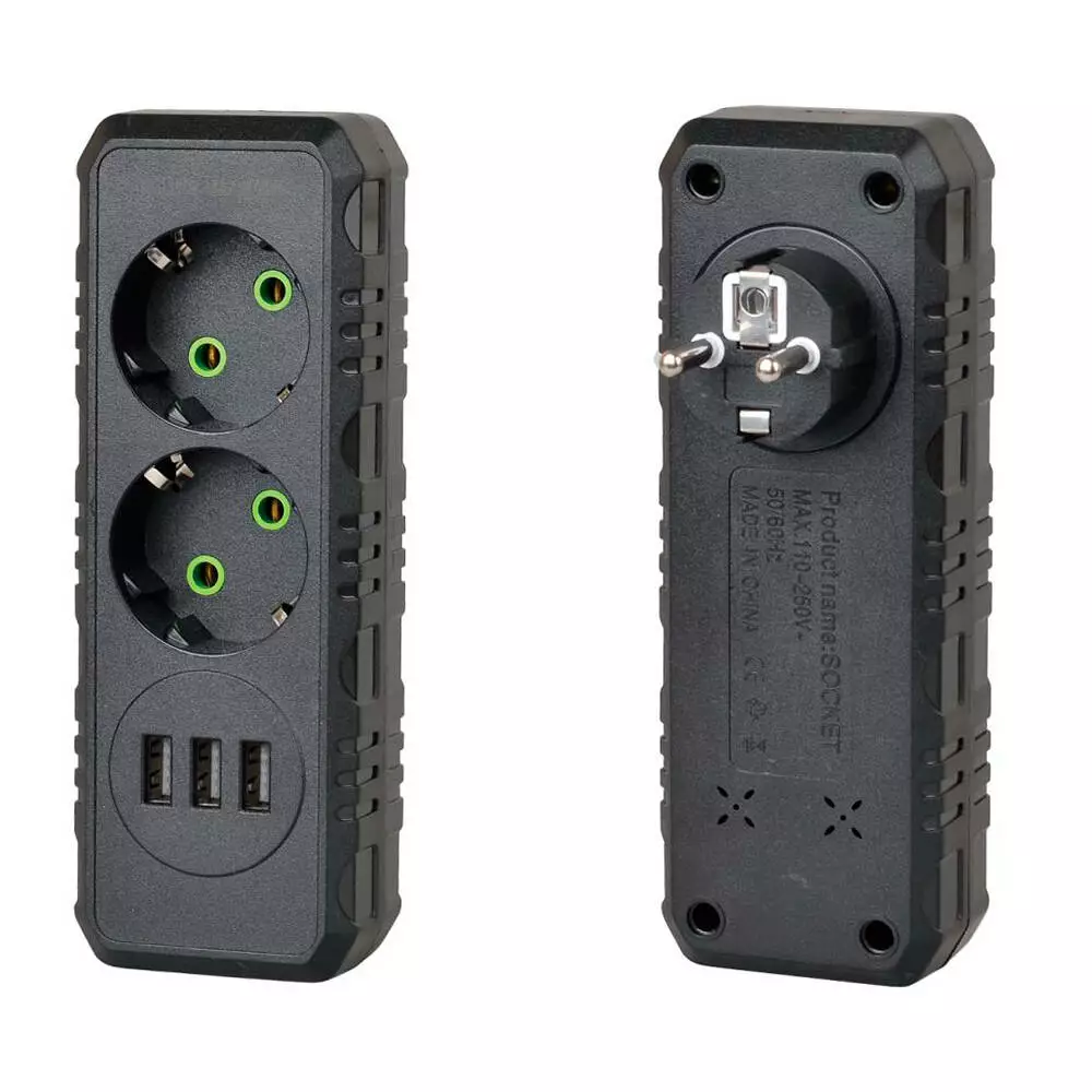 USB-порти дозволяють одночасно заряджати кілька гаджетів, що особливо зручно за умов обмеженої кількості розеток. Розетка підтримує безпечне підключення та використання пристроїв, таких як телевізори, комп'ютери, лампи та дрібна побутова техніка.
