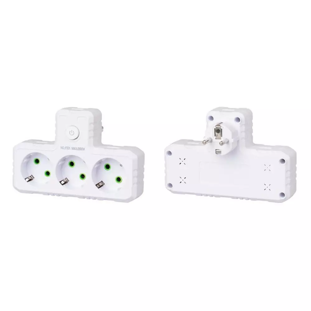 Розетка трійник Т-подібний із заземленням F301-White, 3 розетки, 2500W, 10A, 110-250V~Max, Blister