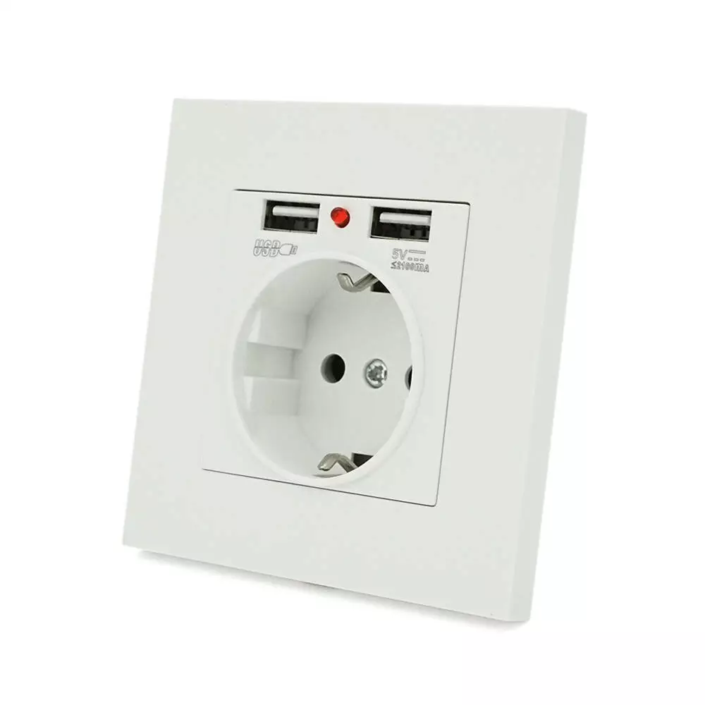 Розетка врізна, Input: AC 100-250V 16A, 2-USB- виходу, White