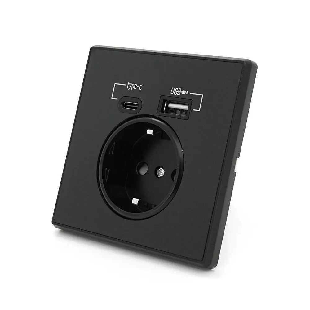 Розетка врізна із заземленням, Input: AC:110-250V/16A, Type-C/USB-виходи, Black
