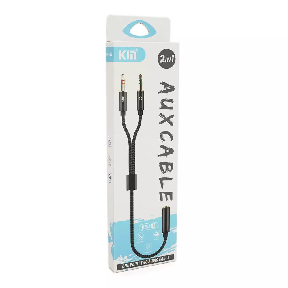 Розгалужувач аудіо для навушників і мікрофона, Jack 3.5 (мама) 4 pin =>2*Jack 3.5(тато) 3 pin, круглий в обплетенні, Box