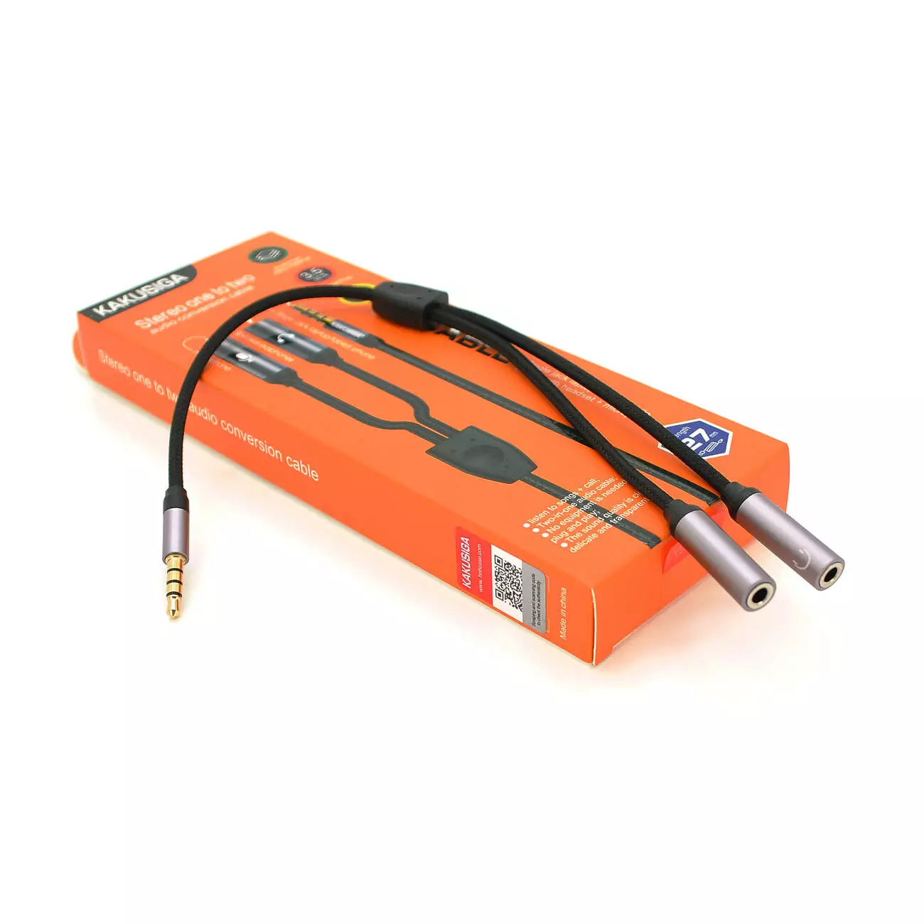 Розгалужувач аудіо iKAKU KSC-570 HUIYIN для навушників і мікрофону, Jack 3.5 (тато) 4 pin => 2 * Jack 3.5 (мама) 3 pin, круглий, Box
