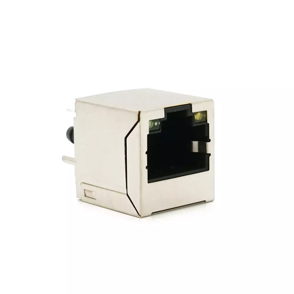 Роз'єм RJ45 з інтерфейсом 8P8C, вертикальний, з індикацією, під пайку, Silver Q100