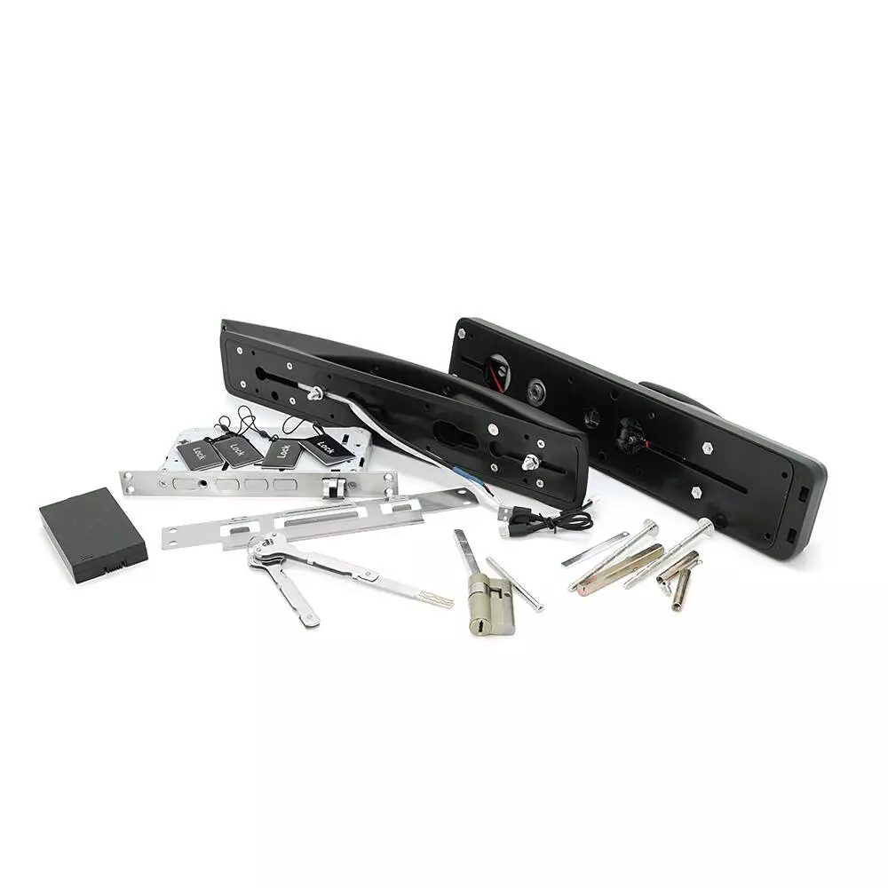 Розумний замок YOSO YO-K10 на АКБ 4200mA , Відбиток пальця/обличчя/код/карта/ключ/додаток ( врізна частина 6068) Матеріал алюміній , АРР- Tuya